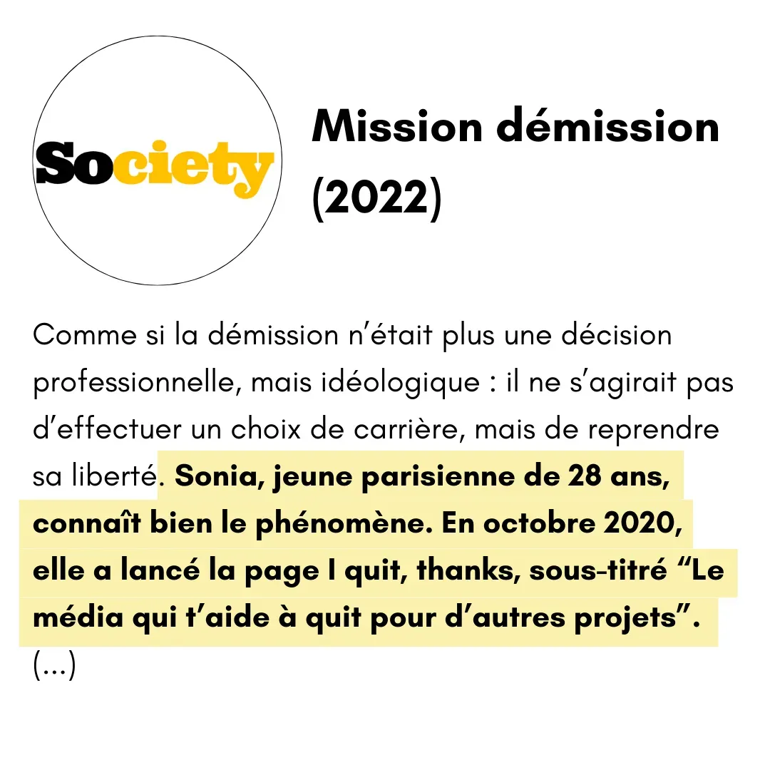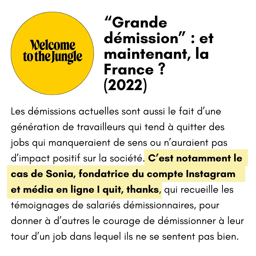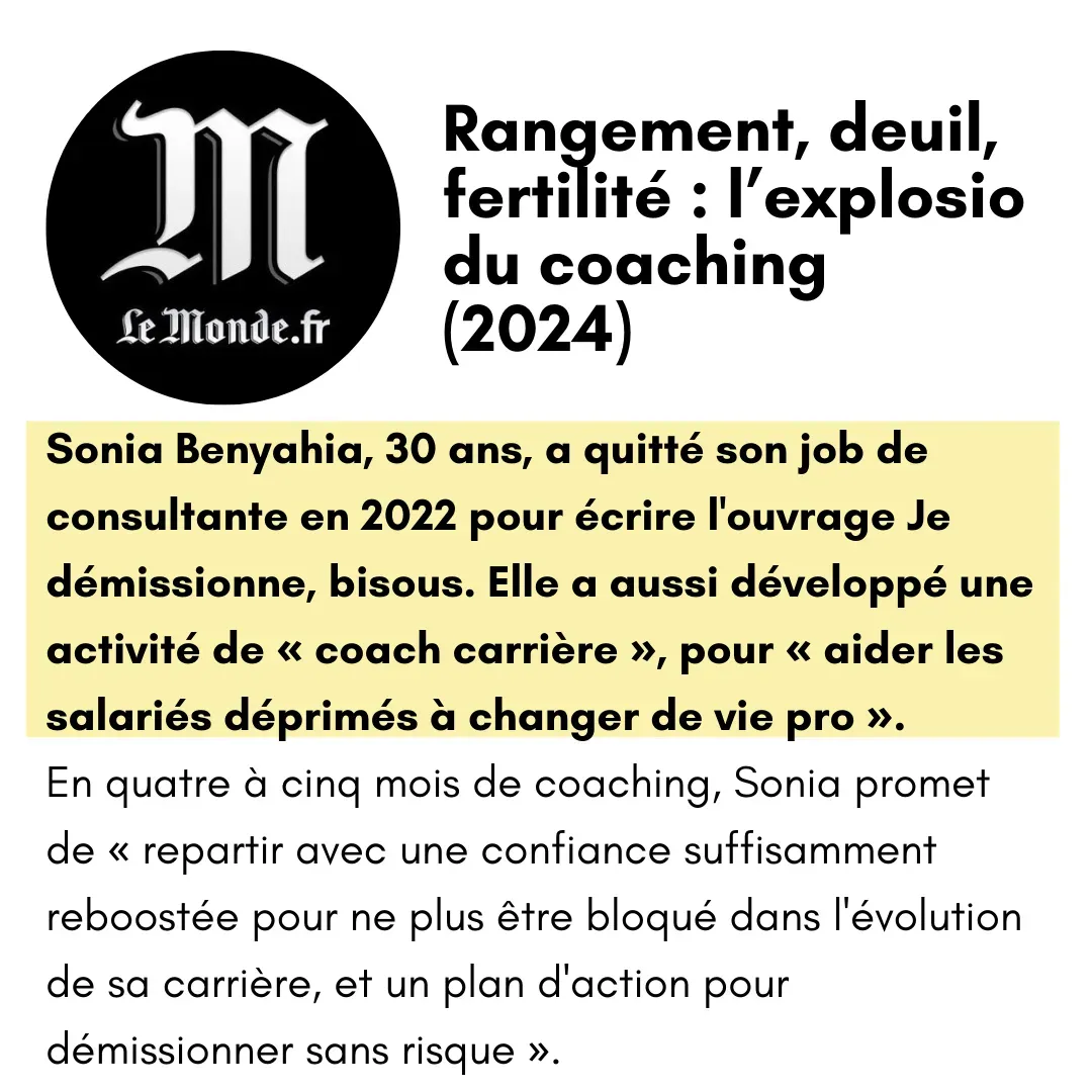 Alors je lance une enquête de 2 ans, auprès de 120 reconvertis. Je veux m'inspirer de leurs parcours pour trouver ma juste place. Et ça marche. Je quitte le conseil pour écrire mon livre "Je démissionne bisous".