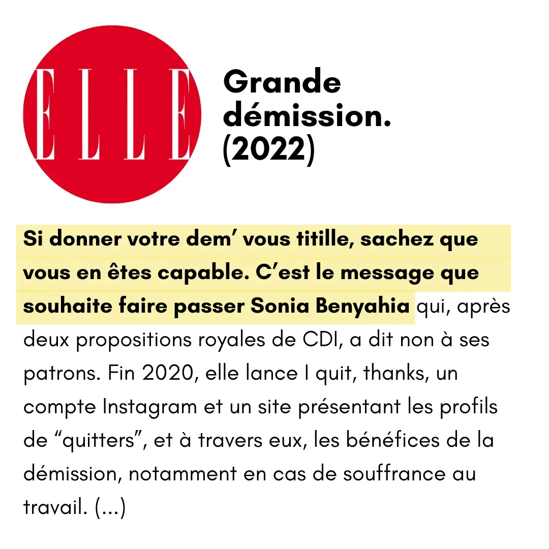 Je crée la méthode I quit thanks®, mon propre programme de coaching individuel pour te reconvertir et bondir de ton lit le matin, sans jamais perdre ta sécurité financière.